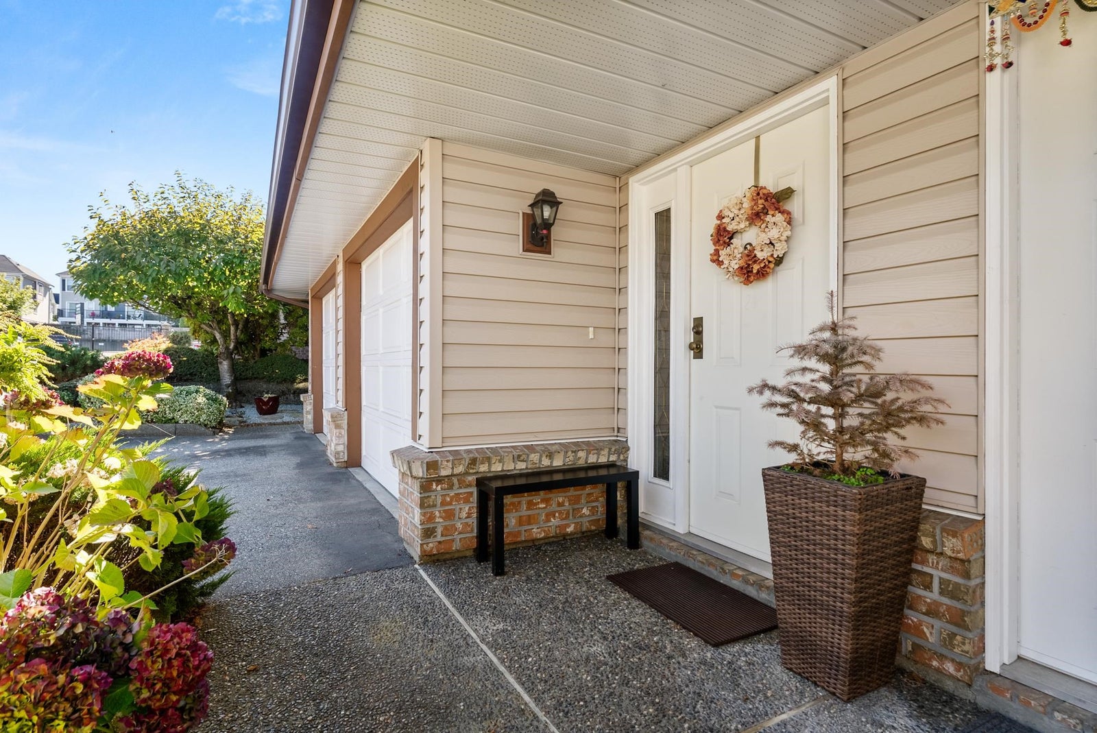 Welcome to Canterbury Gate! This wonderful and spacious townhome has a fantastic layout with an attached garage, 2 large decks (front and back), 2 large bedrooms, 2 full bathrooms and an abundance of natural light from all of the windows. Tastefully upgraded in 2023 with new flooring, paint, stainless steel kitchen appliances, kitchen countertops, kitchen cabinets painted a beautiful modern white, and a new hot water tank. New blinds installed in 2025. This gated complex is in an amazing central location steps to shopping, restaurants, parks, John Maclure Community School, transit, and so many other amenities! Sorry, no pets allowed. Check out the virtual tour video for more!