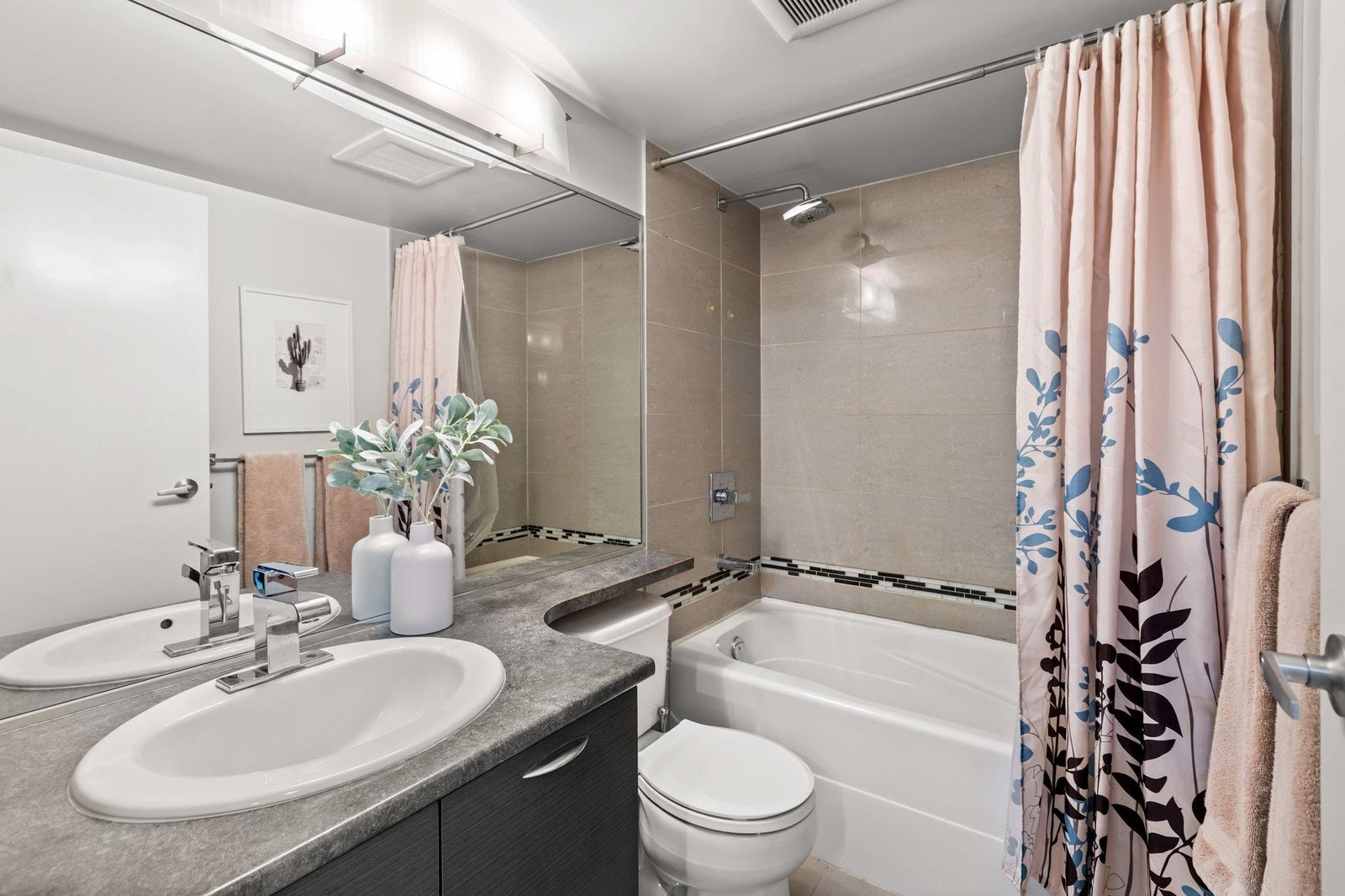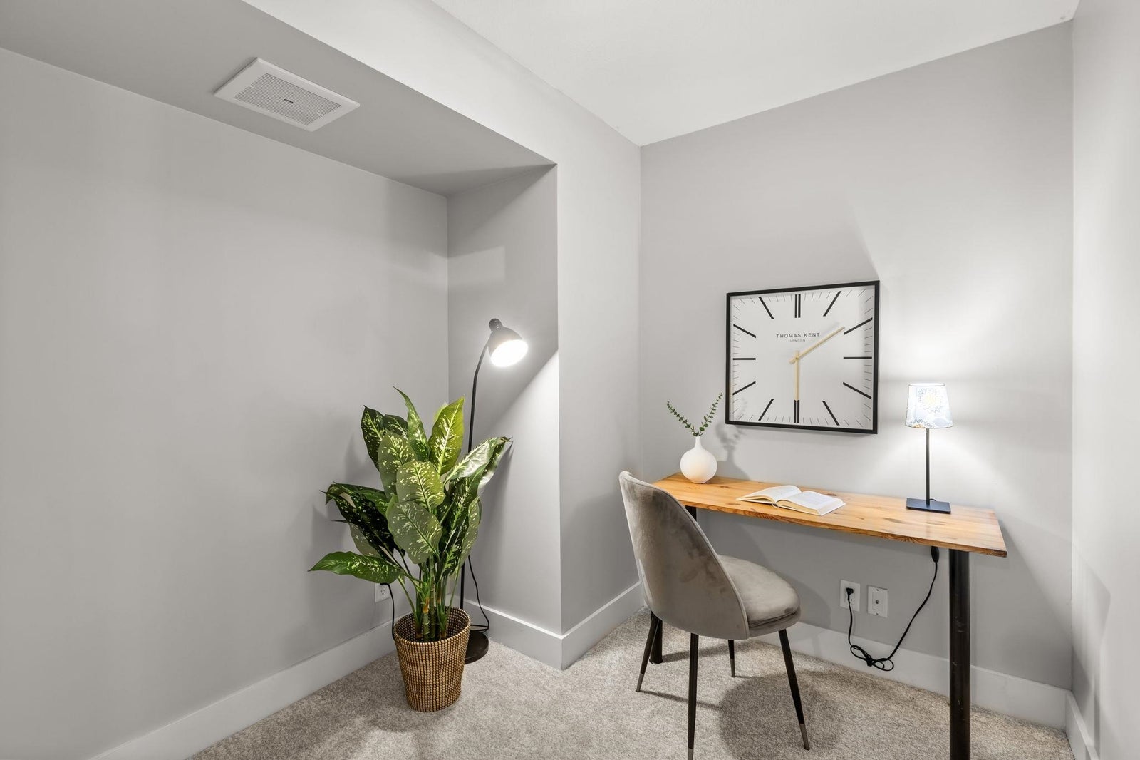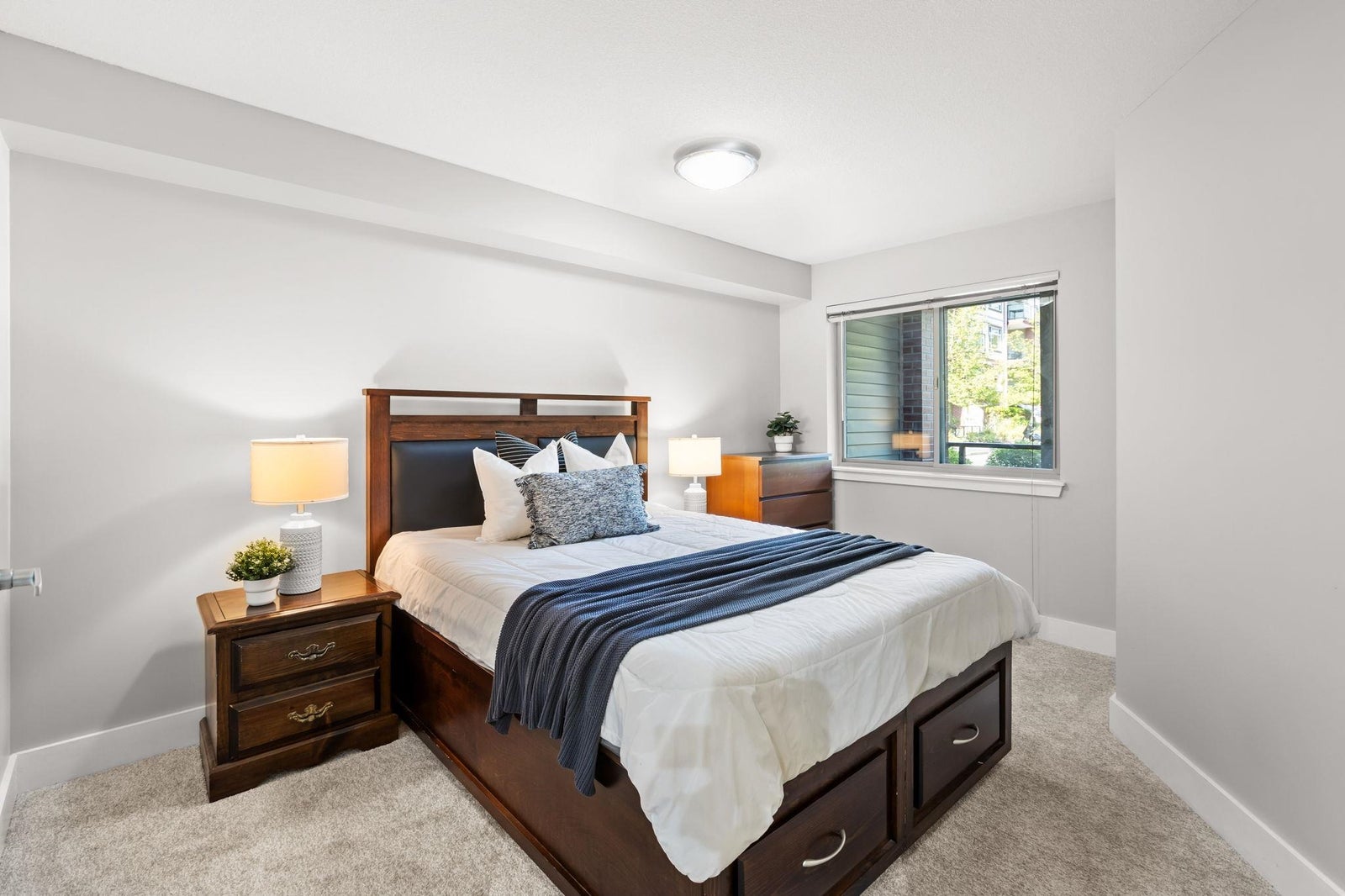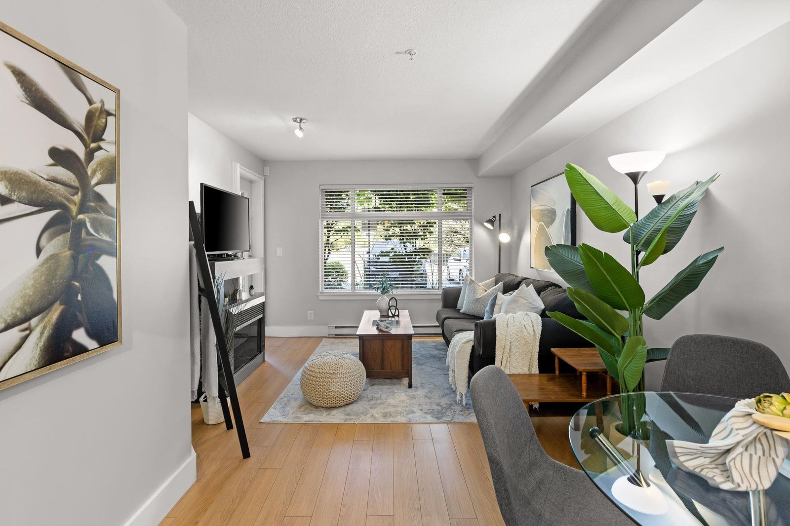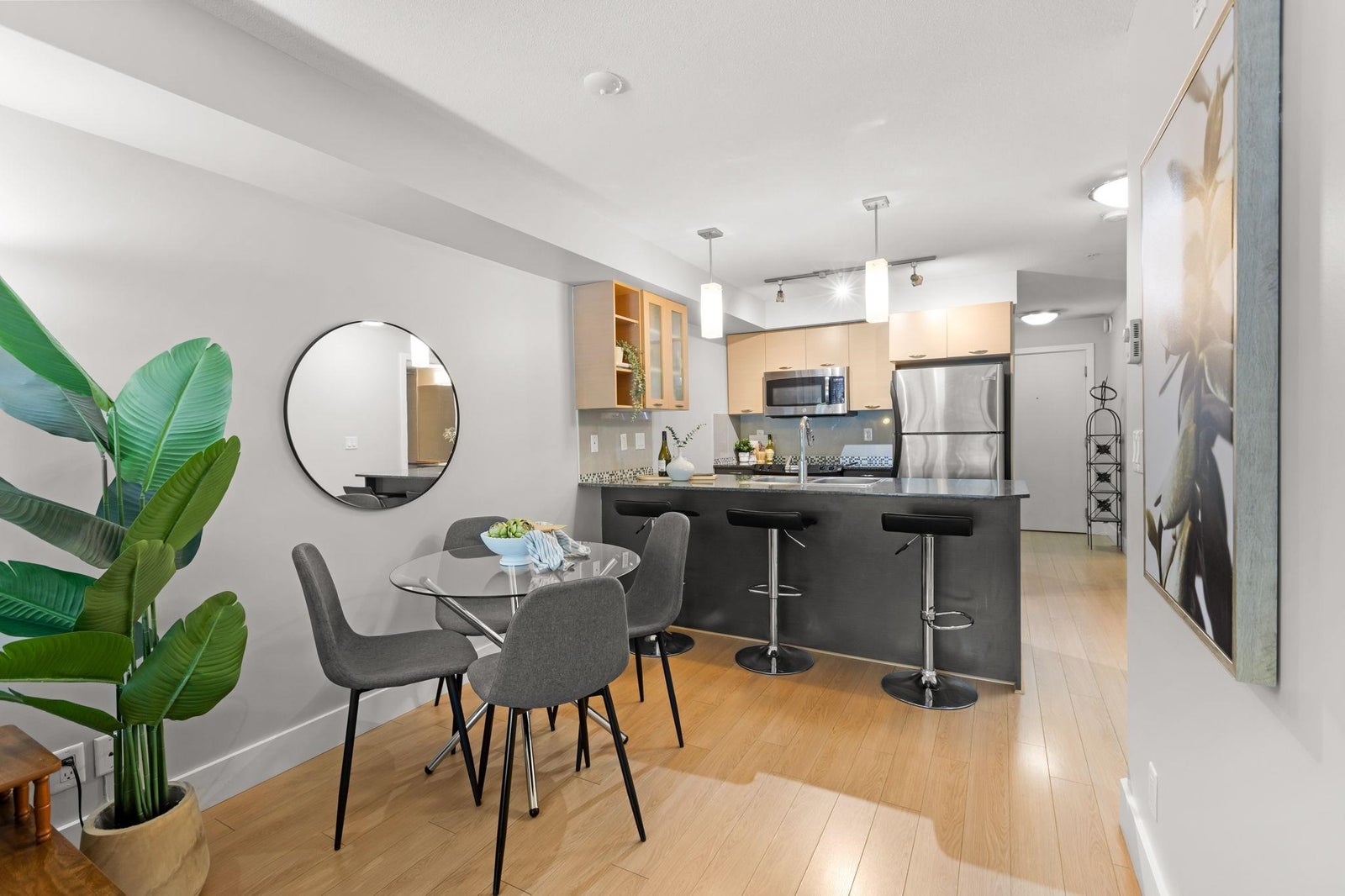 Welcome to this beautiful 1 bedroom + den at "Latitude". This thoughtfully designed ground-level suite combines comfort with contemporary flair. Enjoy an open-concept living area anchored by a cozy electric fireplace, flanked by seamless access to your private patio which is perfect for morning coffee or evening relaxation. The sleek kitchen boasts granite countertops, stainless steel appliances and the integrated eat-up bar enhances both function and entertaining ease. A generous den adds the finishing touch, offering the perfect space for a home office, nursery, or creative nook. The building features a well-equipped fitness room, billiards room, and two guest suites available for nightly rental—an ideal touch for hosting friends or family. 1 Parking & 1 Storage.